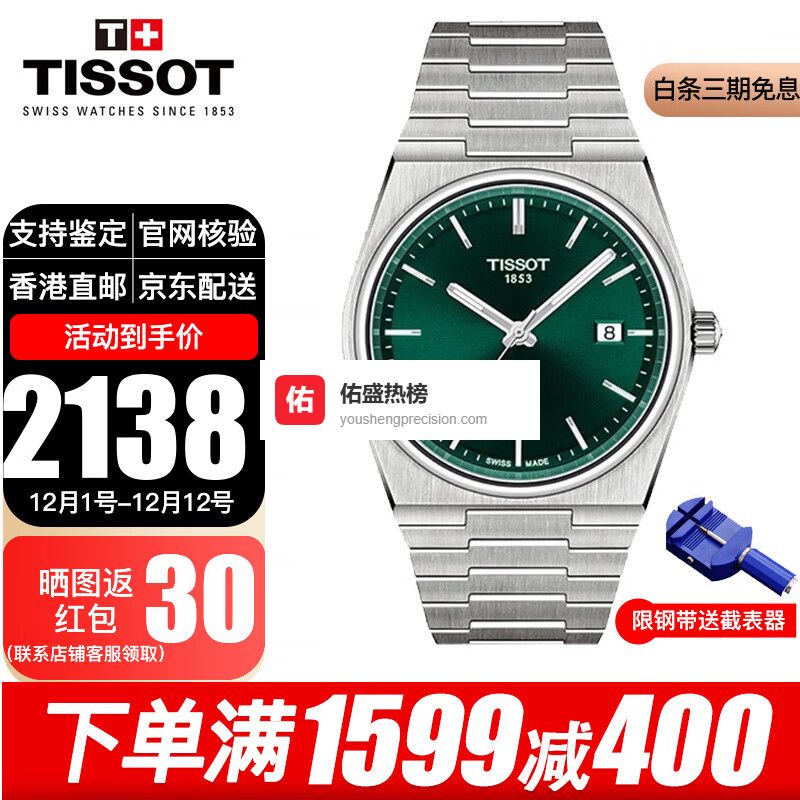 天梭(TISSOT)手表男明星同款PRX超级玩家系列钢带石英表男士腕表送男友送老公 T137.410.11.091.00绿盘钢带¥