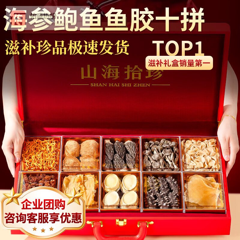 珍悉海参鲍鱼羊肚菌山珍海味十拼礼盒海鲜礼盒300g年货礼盒礼品送长辈¥