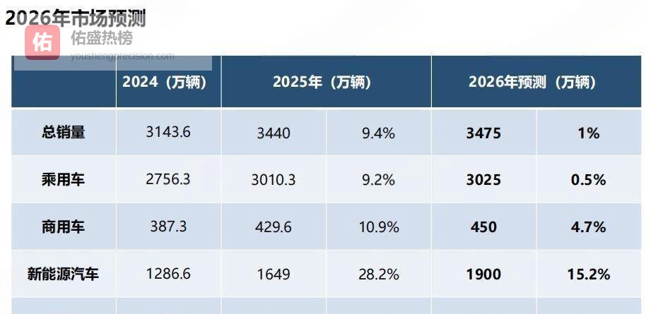 中国汽车流通协会副秘书长郎学红表示,在这一系列政策的推动下,2026年一季度,汽车市场有望实现同比正增长。 中汽协副秘书长陈士华则预计,2026年全年,中国汽车的总销量会在3475万辆左右,同比增长1%。 其中,新能源汽车的销量预计能达到1900万辆,继续保持15%以上的较快增长。 中国汽车流通协会副会长罗磊从市场健康角度分析认为,随着行业整治“内卷式”价格战的效果慢慢显现,再加上以旧换新政策的深入,新车市场的价格有望保持稳定。 新车价格稳了,二手车的流转也会有一个更健康的环境,预计2026年二手车市场的交易规模还会继续稳步扩大。