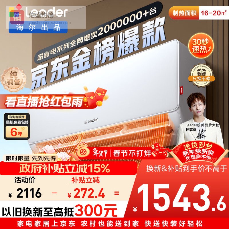 【京东自营】海尔出品统帅空调超省电1.5匹超一级冷暖变频空调挂机挂式双排铜管蒸发器国家补贴KFR-3¥