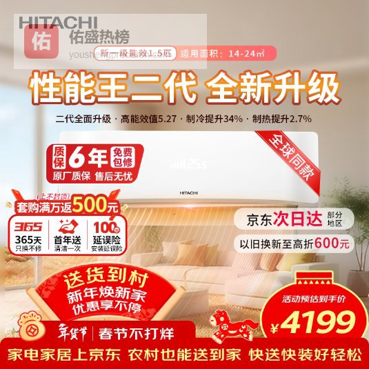 【京东自营】日立空调白熊君HH二代1.5匹新1级能效铜管变频冷暖性能王抗菌挂机国家补贴/以旧换新RA¥