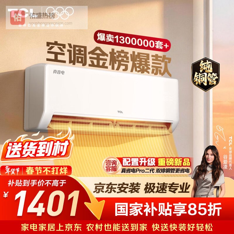 【京东自营】TCL空调京东联名真省电SE大1.5匹新一级能效变频纯铜管挂机冷暖壁挂式卧室KFR-35¥