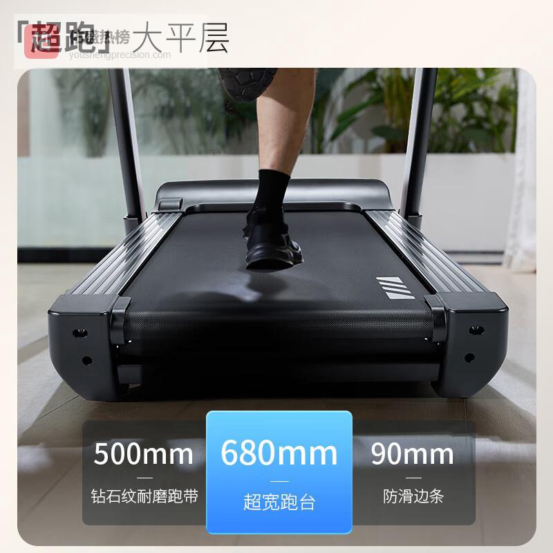 4️⃣宽敞的跑台设计:680mm的超宽跑台让运动者感受到无束缚的奔跑乐趣。防滑边条加上耐磨跑带,不仅提高了使用安全性,还保证了在各种强度运动中的稳定性。
