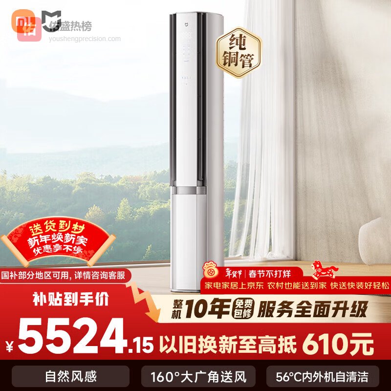 【京东自营】小米米家空调双出风3匹一级能效四分区独立送风立式柜机72LW-NA11/M2A1整机十年¥