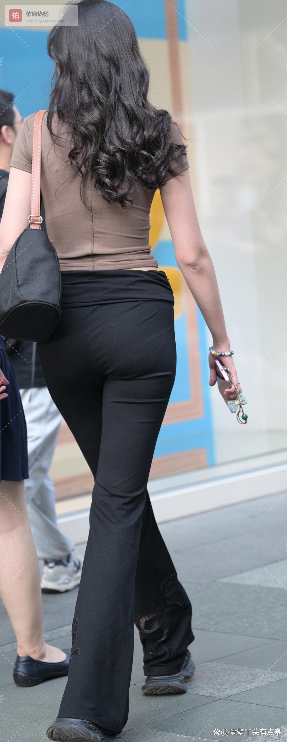 黑色喇叭裤则采用"上紧下松"的经典剪裁,臀部至大腿处的紧身设计强调曲线美,从膝盖以下逐渐散开的裤腿则中和了紧身设计可能带来的局促感。这种裤型对身材包容性极强,能够修饰小腿线条,配合厚底运动鞋,轻松实现"秒变大长腿"的视觉效果。后视图中可见裤装在臀部位置的特殊省道处理,既保证了活动舒适度,又让臀部线条更显圆润挺翘。