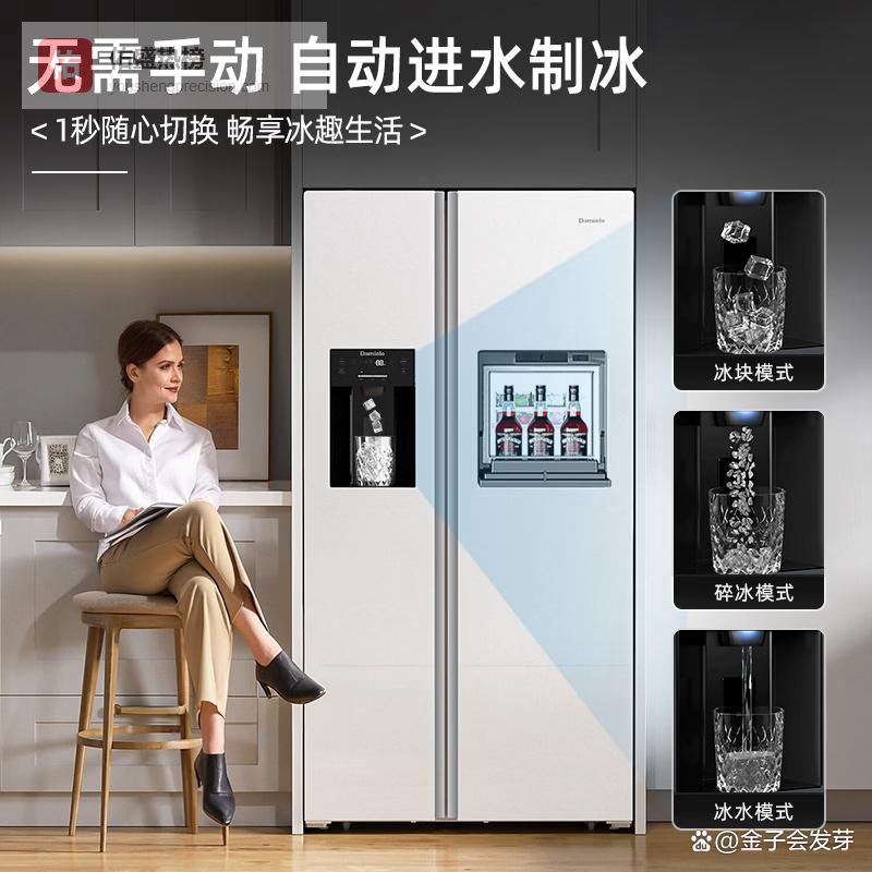 ③ 达米尼573L双变频全自动制冰冰箱达米尼这款冰箱最打动人的,是它把三种制冰模式做成了随手切换的日常操作:想喝冰美式就按“冰块模式”,要调鸡尾酒就切到“碎冰模式”,泡柠檬水直接选“冰水模式”,出水口现制现饮,3秒出冰不等待。整个过程安静又顺滑,没有卡顿、没有异响。