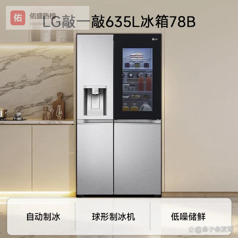 ① LG双开门635L全自动制冰冰箱LG这款冰箱把球形制冰机直接搬进了客厅,不是那种小颗粒碎冰,而是圆润饱满的冰球,加在威士忌里慢融不稀释,口感稳得很。它用的是整机全自动化制冰系统,从进水、结冰到脱模一气呵成,全程不用你动手,连冰盒都不用洗——冰块自动弹出后,机器会自我清洁模具,省心程度拉满。