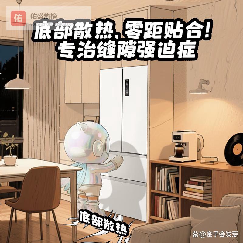 ② TCL法式409L超薄零嵌冰箱TCL这款法式多门冰箱主打一个“零距离贴合墙面”——它用的是底部散热设计,背面不用留缝,靠墙放得严丝合缝,小户型厨房瞬间多出几厘米活动空间。这种结构还顺带解决了传统冰箱后背发热、贴墙易凝露的老问题,墙面干爽,地板也不返潮。