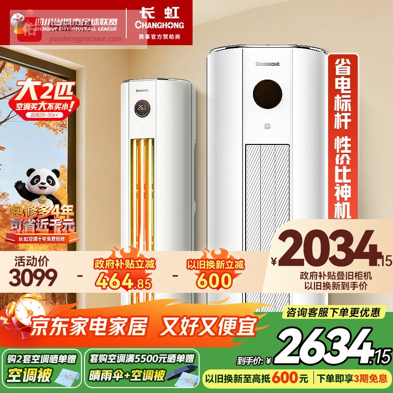 长虹大2匹空调柜机 一级能效节能省电变频客厅立式柜式空调 性价比神机官方直营 十年包修 大2匹 一级能效¥