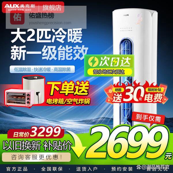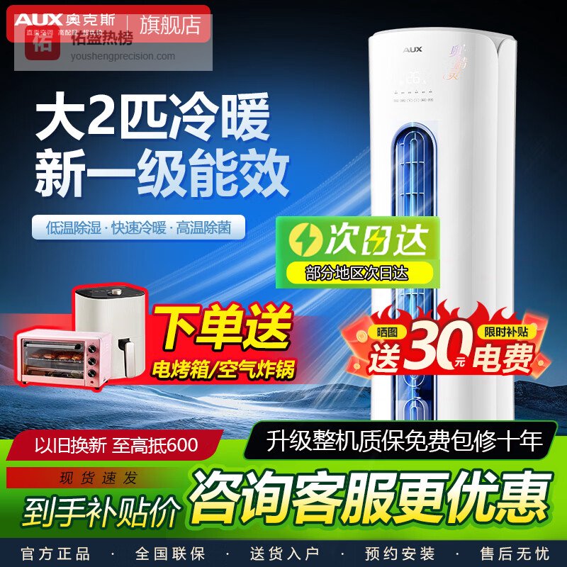 奥克斯(AUX)家电补贴15%大2匹/3匹新一级/三级能效变频冷暖节能省电家用立柜式圆柱空调柜机以旧换新 大2匹 三级能效 【超值性价比柜机】¥