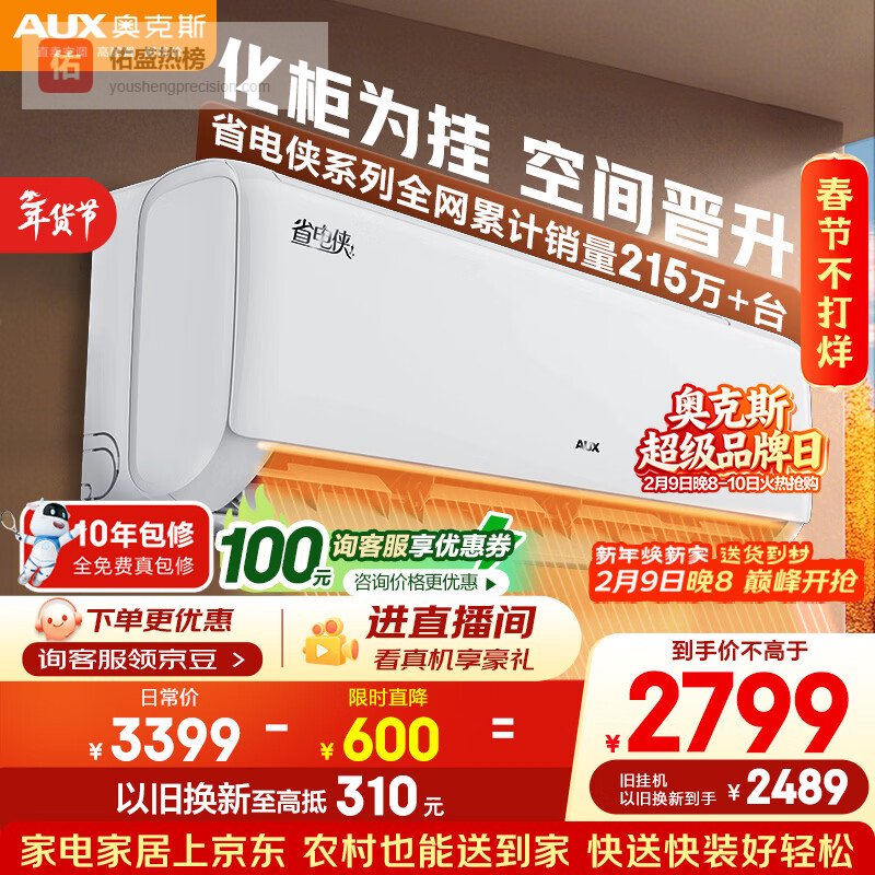 奥克斯(AUX)1.5匹新一级能效空调挂机 变频冷暖壁挂式空调 自清洁一键防直吹 节能省电卧室空调挂机以旧换新 1.5匹一级能效极速侠节能静音省电适用15-20㎡¥