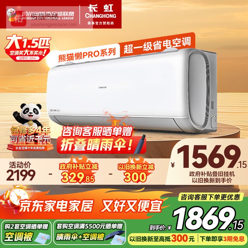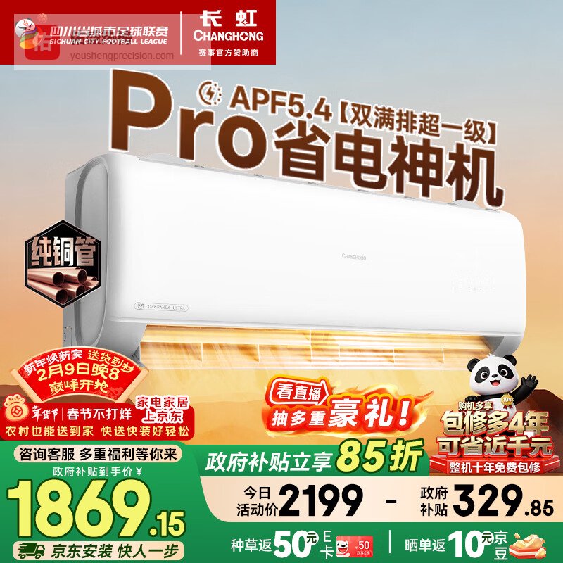 长虹空调大1.5匹熊猫懒Pro超一级省电纯铜管冷暖挂机国家补贴以旧换新KFR-35GW/ZDCSW1+RA(PR)十年包修¥