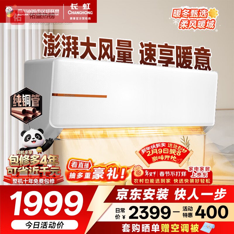 长虹空调大2匹 超省电家电空调家用客厅纯铜管冷暖变频挂机 以旧换新KFR-51GW/ZDTCW2+R2十年包修¥