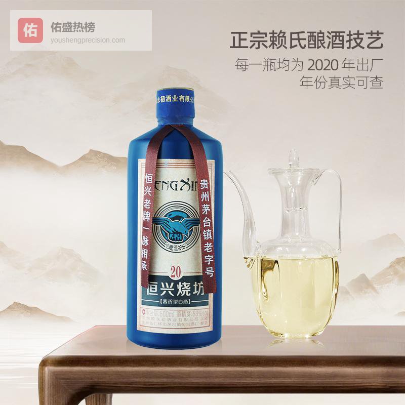【品牌专营】恒兴烧坊20酱香型白酒2020年生产53度纯粮食酒坤沙大曲口粮酒宴请官方店53%vol5¥