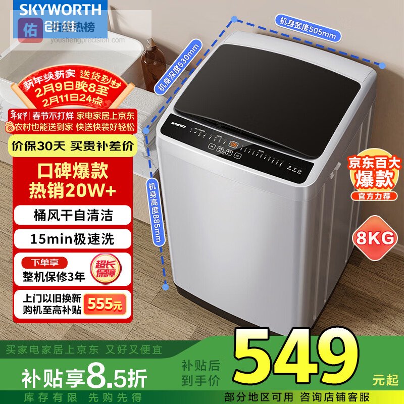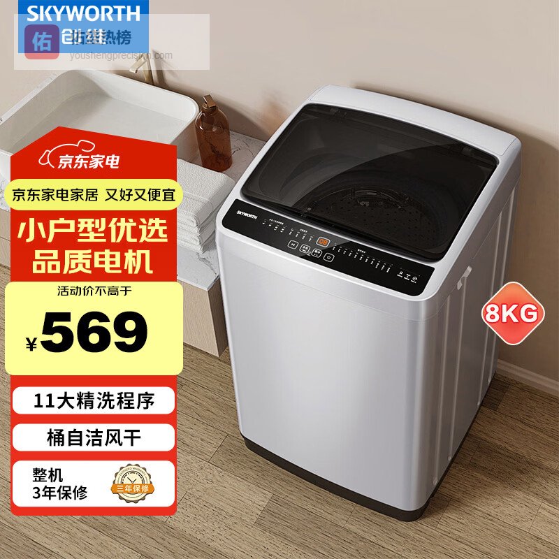 创维(SKYWORTH)8公斤洗衣机全自动波轮 家用宿舍租户洗衣机筒自洁脱水甩干 降噪省电¥