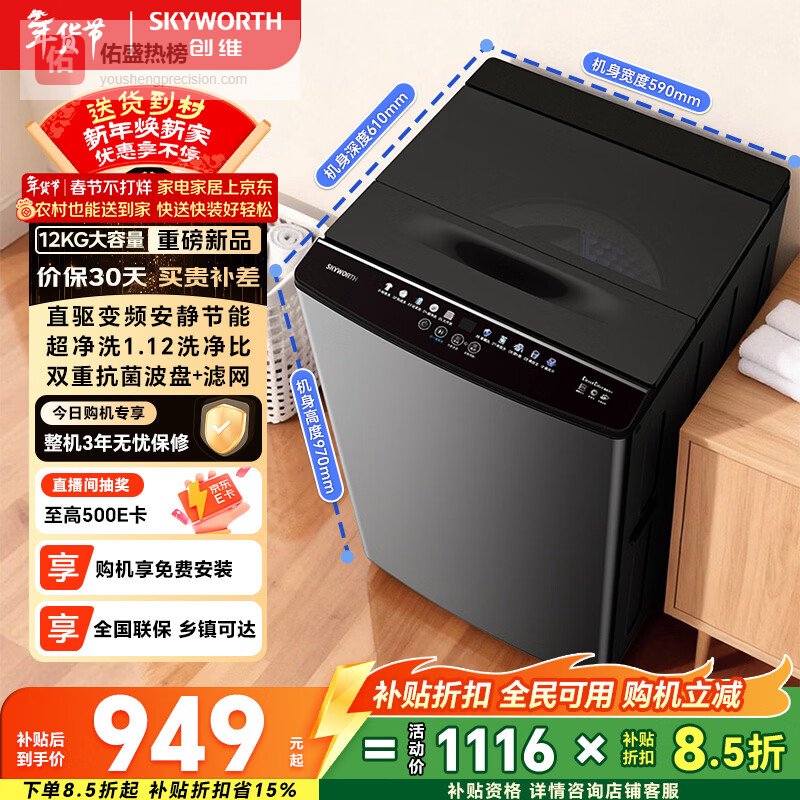 创维波轮洗衣机全自动家用 12公斤大容量 除螨 直驱变频一级能效 以旧换新 国家补贴 京东自营T120JBD¥