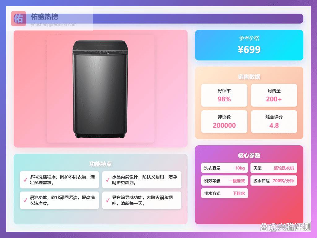 除了容量和功能,选购的时候还要关注一下洗衣机的电机类型。一般来说,DD直驱变频电机的洗衣机,噪音更小,运行更平稳,也更省电。当然,价格也会相对贵一些。如果预算有限,普通电机的洗衣机也够用。另外,还要注意洗衣机的洗涤程序是否丰富,是否能满足你不同衣物的洗涤需求。最后,别忘了看看洗衣机的外观设计,选择一款颜值高的洗衣机,也能让你的洗衣体验更愉快,毕竟赏心悦目的东西谁不喜欢呢?