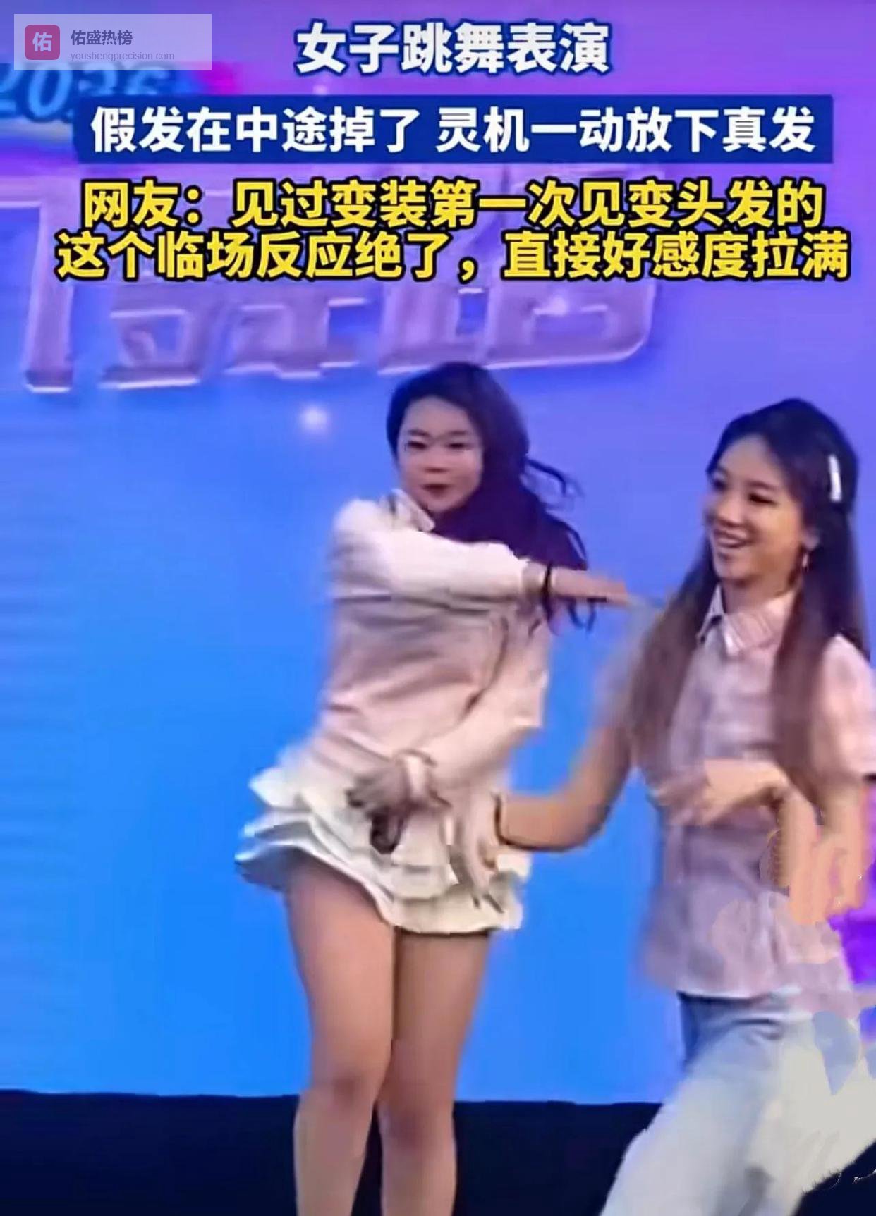 最近网络上一段舞蹈表演的录像刷爆了屏幕,很多人看完都夸那位小姐姐反应机敏得很。事情其实挺简单:一个女生在台上跳舞时,头上的假发突然掉了一下,本来挺尴尬的场面,她却一秒不慌,顺势把真发露了出来,整场表演完全没停顿,也没打乱节奏,反倒把一个小插曲变成了自然的换发动作。这段视频也因此被网友们纷纷转发点赞。