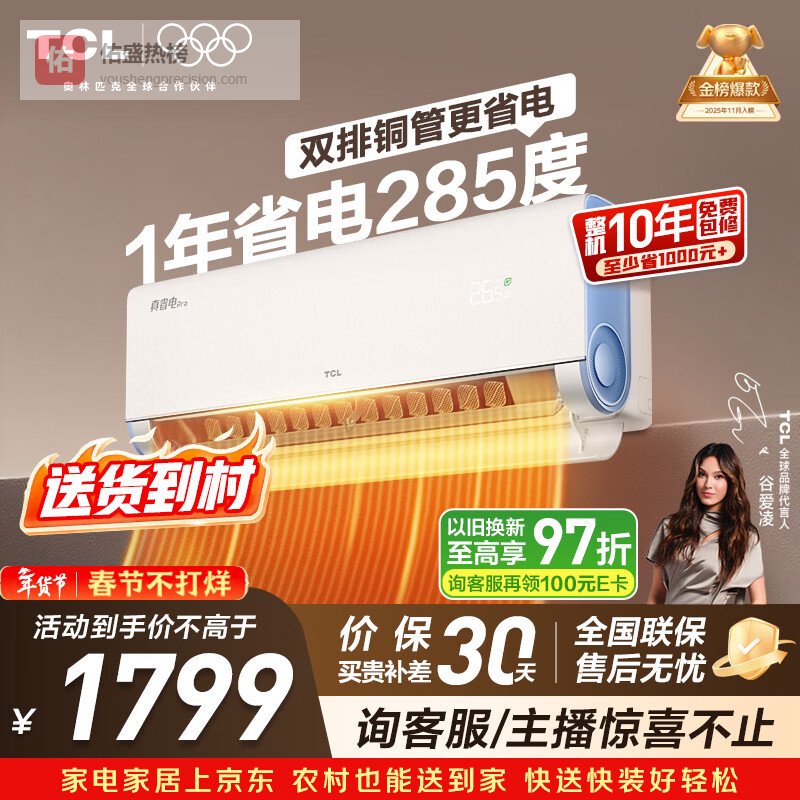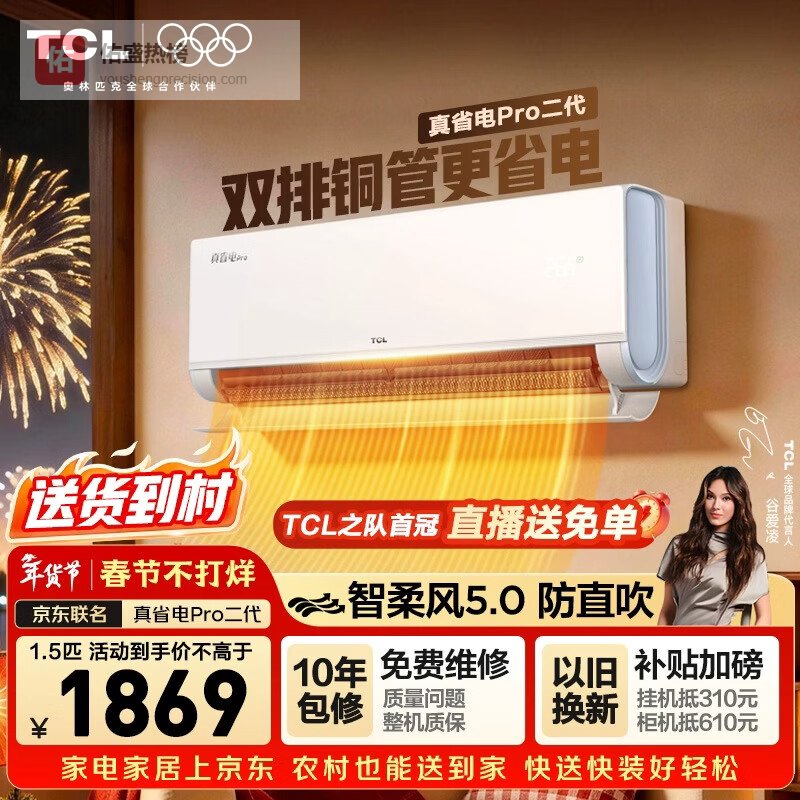 【京东自营】TCL空调新品京东联名真省电Pro二代大1.5匹新一级能效变频双排铜管壁挂式冷暖KFR-¥