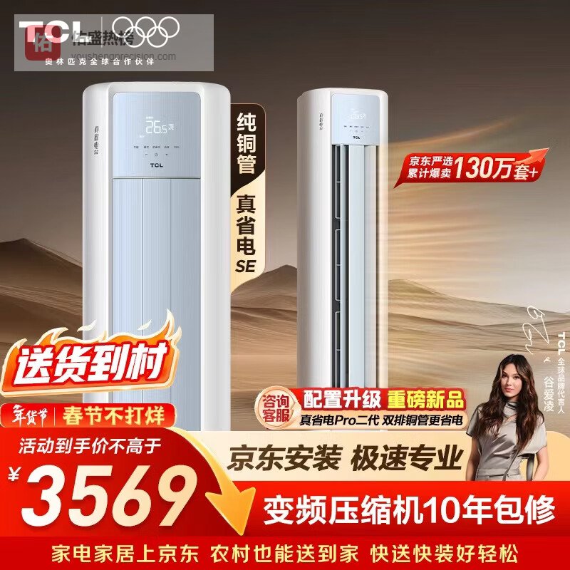 【京东自营】TCL空调京东联名真省电SE大3匹新一级能效变频纯铜管冷暖立式柜式柜机KFR-72LW/¥