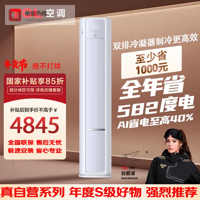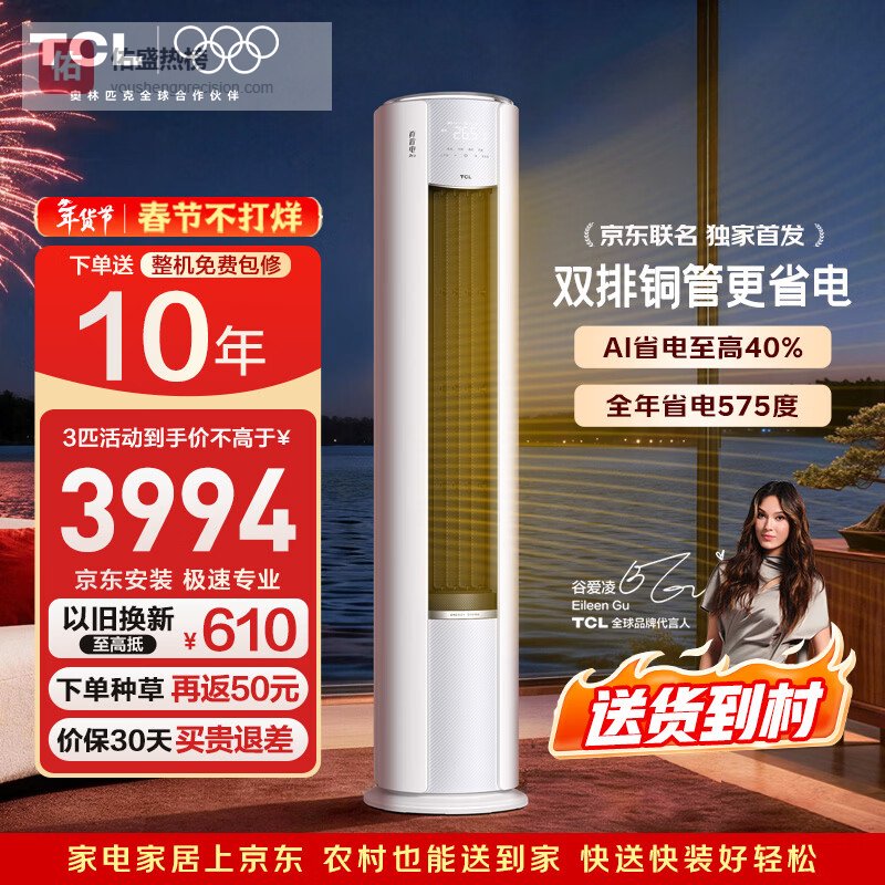 【京东自营】TCL空调新品京东联名真省电Pro二代大3匹新一级能效变频双排铜管立式客厅KFR-72L¥