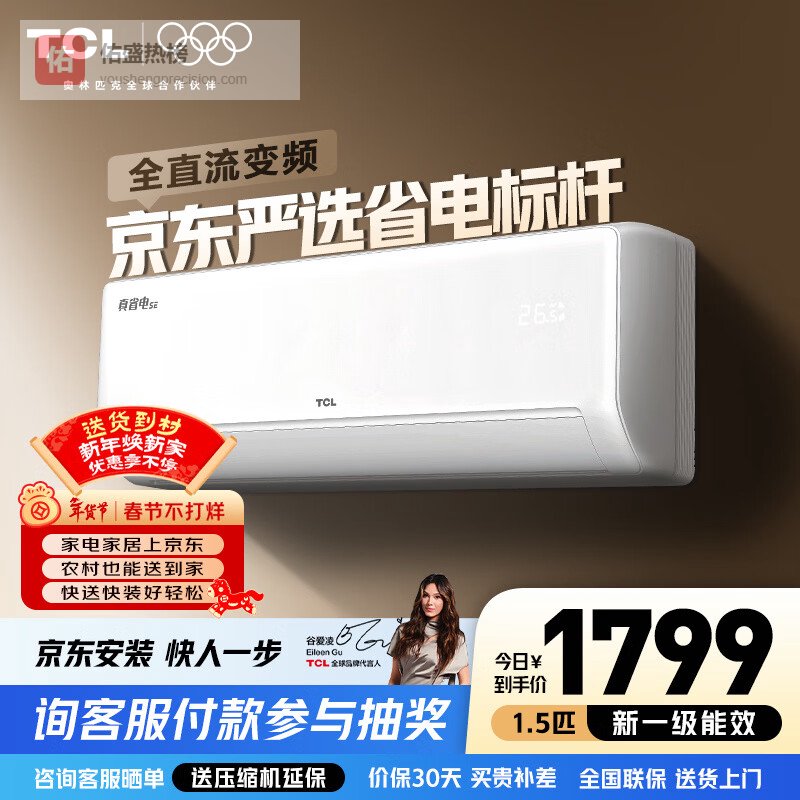 【京东自营】TCL【真自营】京翼1.5匹新一级能效全闭合大导板柔风防直吹舒适健康空调KFR-35GW¥