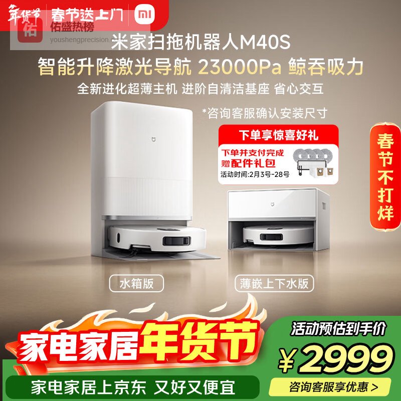 【京东自营】米家【小米发布会新品】扫地机器人M40S超薄上下水版扫地机器人扫拖一体擦地拖地洗地机吸尘¥