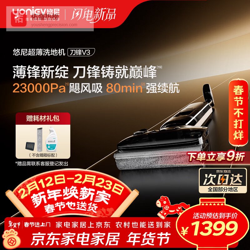 【京东自营】悠尼刀锋V3洗地机180°超薄躺平23KPA大吸力拖地机防缠绕低噪家用洗吸拖一体¥