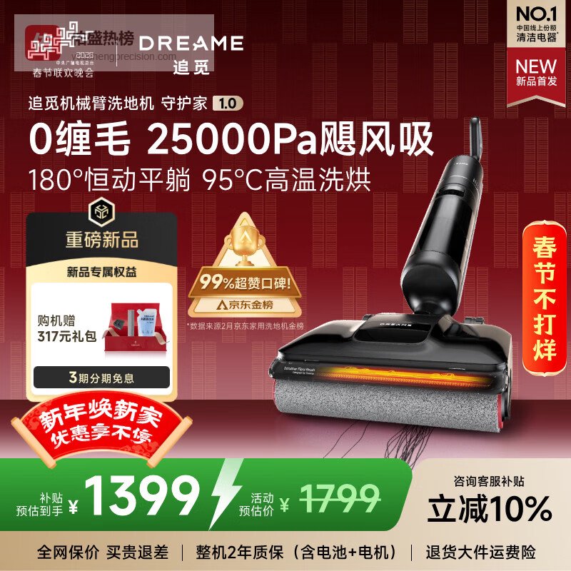 【京东自营】追觅春晚同款守护家1.0洗地机【升级25000Pa飓风吸力】5分钟95℃烘干除菌洗吸拖智¥