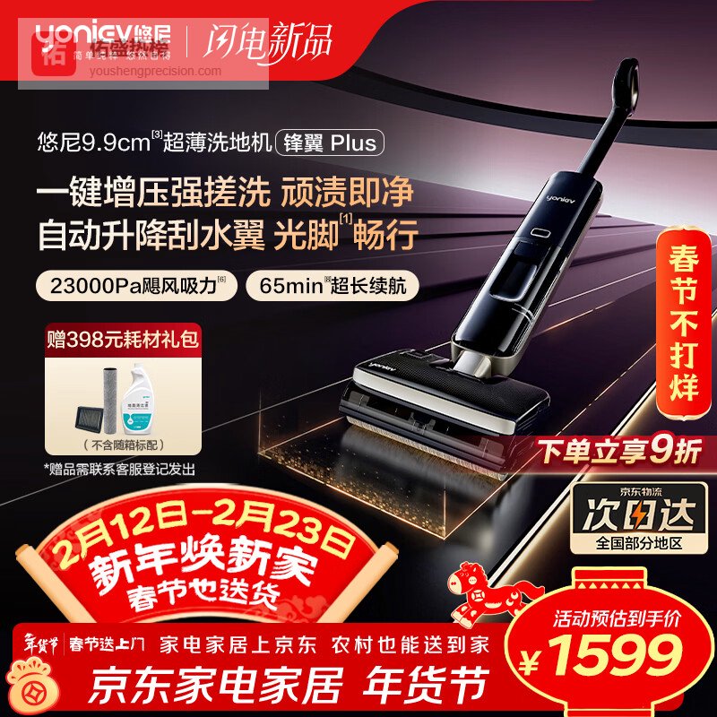【京东自营】悠尼锋翼plus【强力搓洗后拉速干】180°超薄躺平洗地机吸拖一体自动清洗扫地机¥