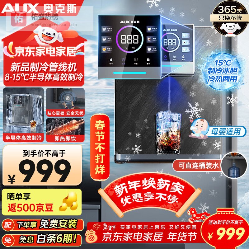 【京东自营】奥克斯家用高端净水器伴侣无水箱壁挂饮水机全通量适配全水路杀菌速热制冷管线机YGX-B-0¥