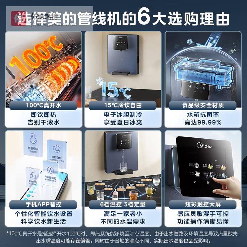 【京东自营】美的管线机壁挂式家用净水器净饮机饮水机伴侣升级真沸腾6段控温可出15℃冰水全通量匹配MG¥