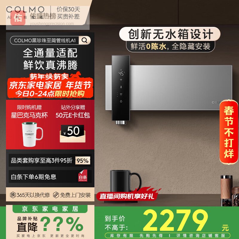 【京东自营】COLMO管线机黑珍珠至简系列壁挂即热加热家用热水机直饮净饮机伴侣无水箱全通量0陈水A1¥