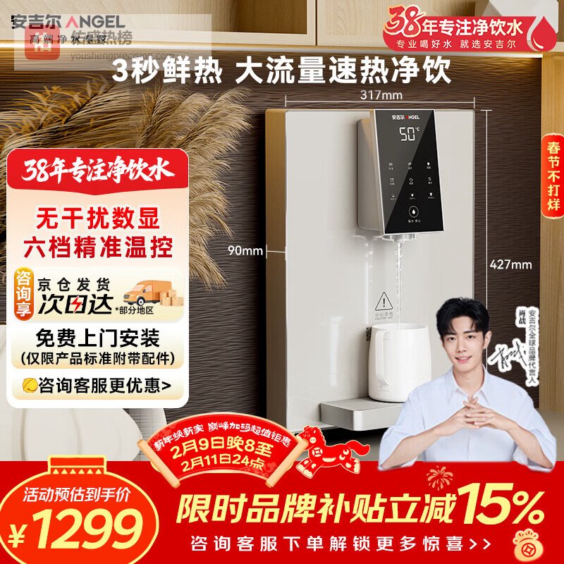 【京东自营】安吉尔壁挂式家用超薄管线机净饮机大流量6档温控数显节能加热直饮水一体机Y3611BK-G¥