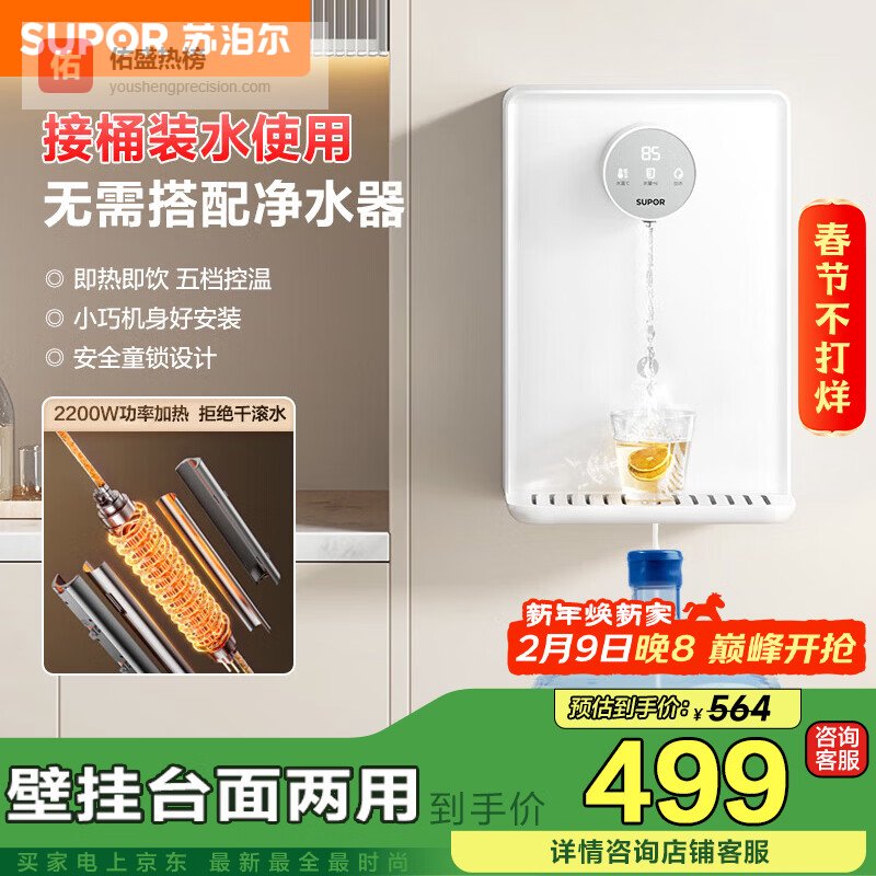 【京东自营】苏泊尔壁挂管线机桶装水款奶油白家用即热饮水机餐边柜直饮机可接桶装水触控操作多档水温水位可¥