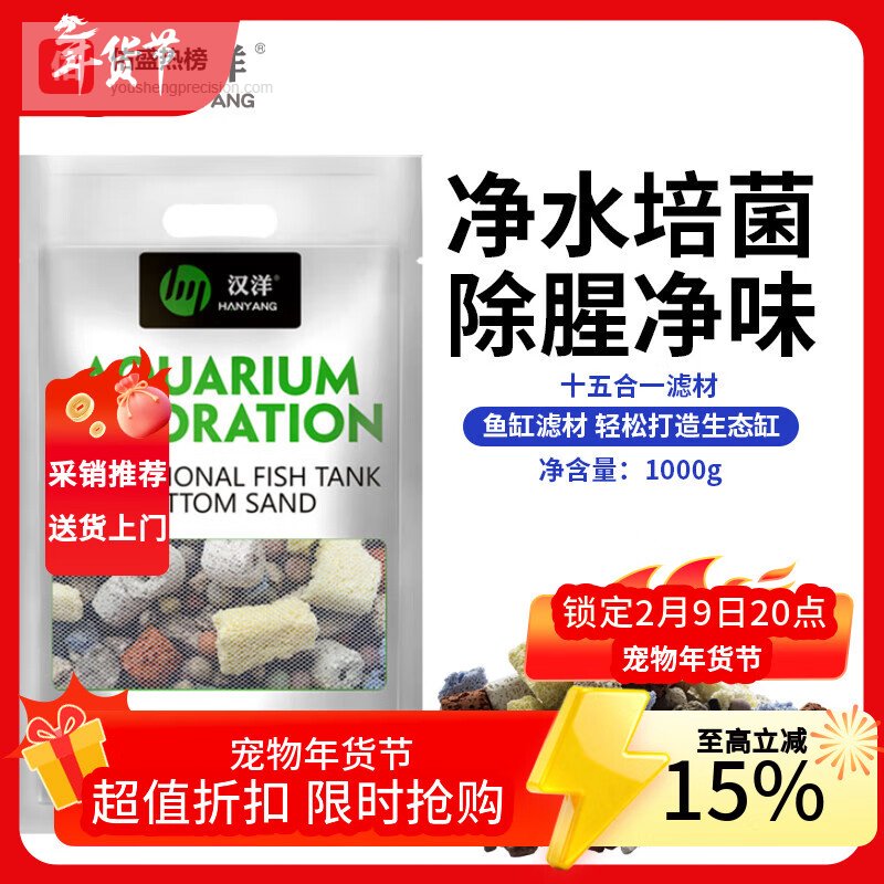 汉洋鱼缸过滤材料火山石陶瓷环细菌屋球水族器材用品15合一滤材1kg¥