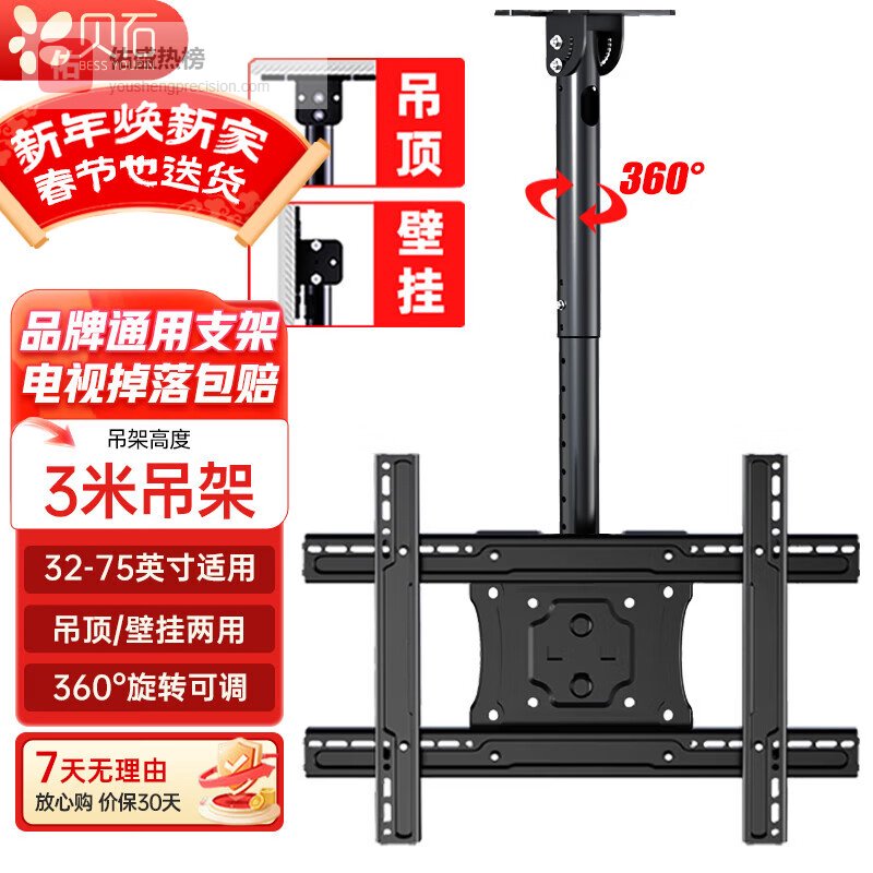 贝石电视吊架(26-100英寸)通用电视机壁挂旋转支架360度旋转吊架电视吊顶架天花板电视吊装挂架 【32-75英寸】3米吊杆|360°旋转角度可调¥