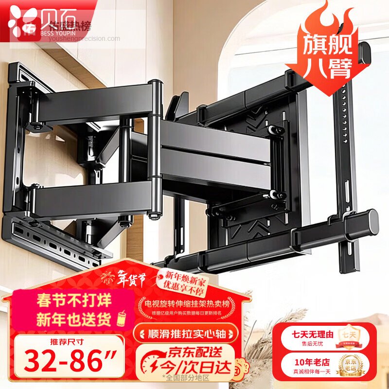 贝石伸缩旋转八臂电视机支架电视挂架壁挂支架适用于海信TCL创维小米等55/65/75/85/98英寸支架 32-86英寸通用/八臂实心轴¥