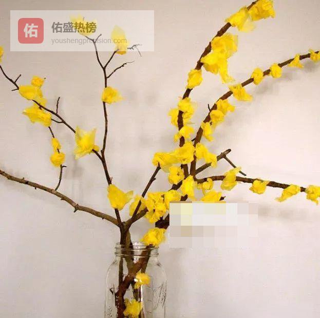假花:绒球花、皱纹纸花、塑料球……统统安排在真枝之间