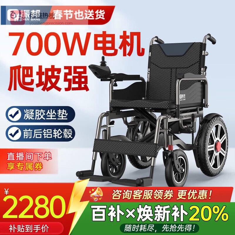 振邦电动轮椅老人专用智能全自动轻便可折叠旅行可带坐便器代步车YLB 5.低靠丨700W丨厚坐垫-12A锂电-20公里¥