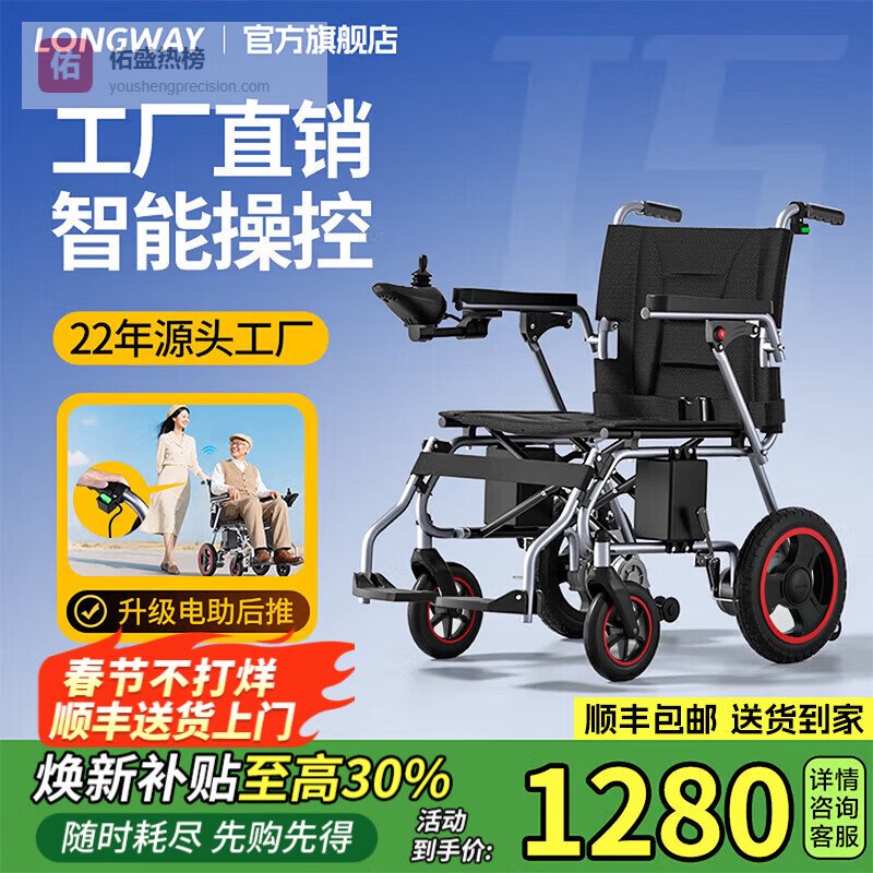 LONGWAY电动轮椅老人专用智能全自动轻便可折叠旅行可推轮椅车LWA08 便携款丨500W+电助力+12AH铅电+跑20公里¥