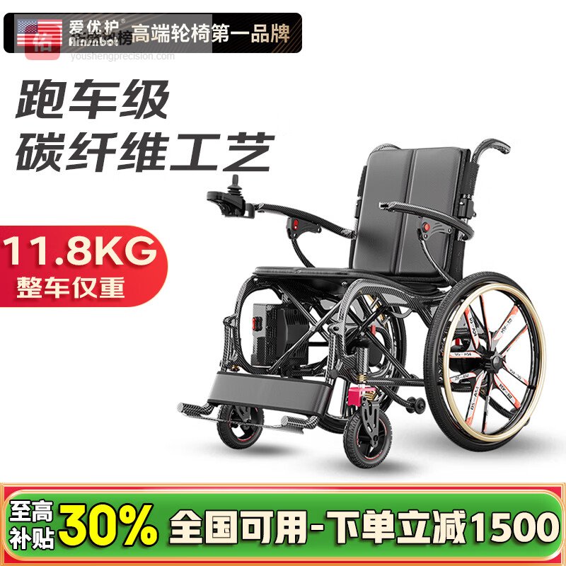 Ainsnbot美国超轻碳纤维电动轮椅智能全自动老人专用轻便可折叠旅行便携 碳纤维|10A锂电/跑20公里+大轮减震+工学座椅¥