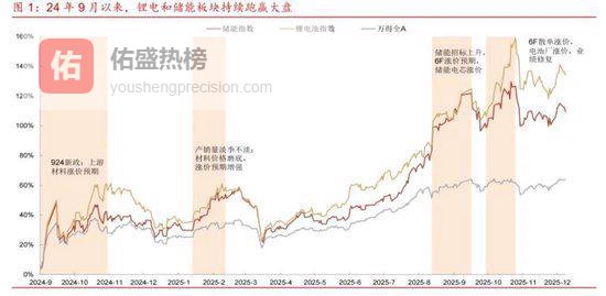 “从2024年9月以来,锂电与储能板块展现出了显著优于大盘的超额收益,行业正在逐步确认周期的地步拐点”。华西证券分析师指出,整个板块在经历“924新政”修复后,2025年逐步开启上行通道,尤其是进入下半年,驱动逻辑更加清晰:随着上游材料涨价预期的强化、储能招标需求的明显回暖以及电池环节价格体系的企稳,供需两侧形成了共振,“板块复苏不再仅限于上游价格与业绩修复的存量博弈,而是叠加了储能新需求的强力拉动”。