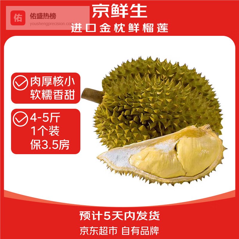 京鲜生 进口金枕头榴莲 净重4-5斤 1个装 鲜果 生鲜 新鲜水果¥