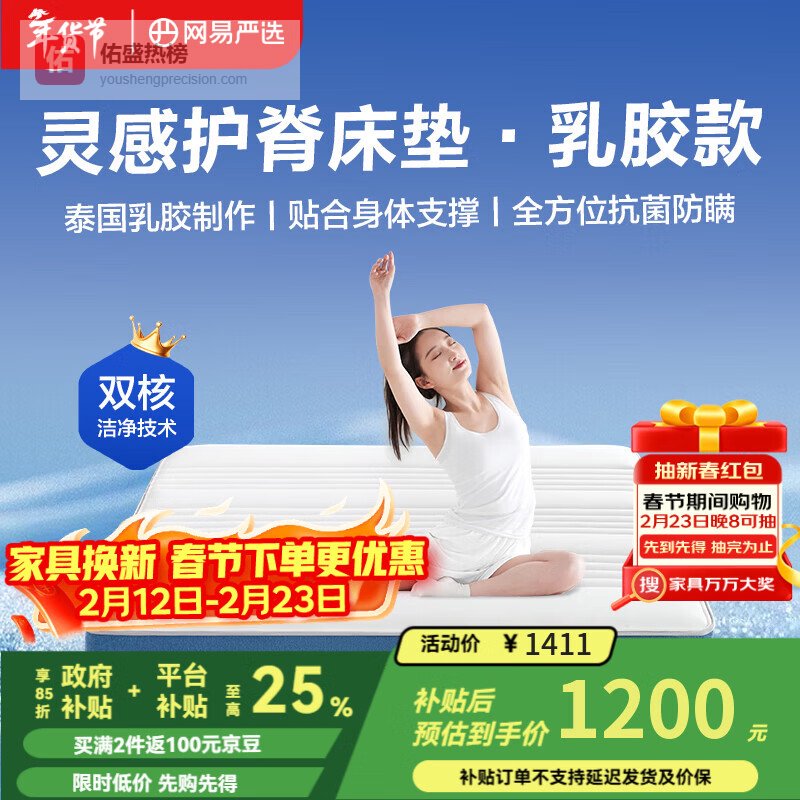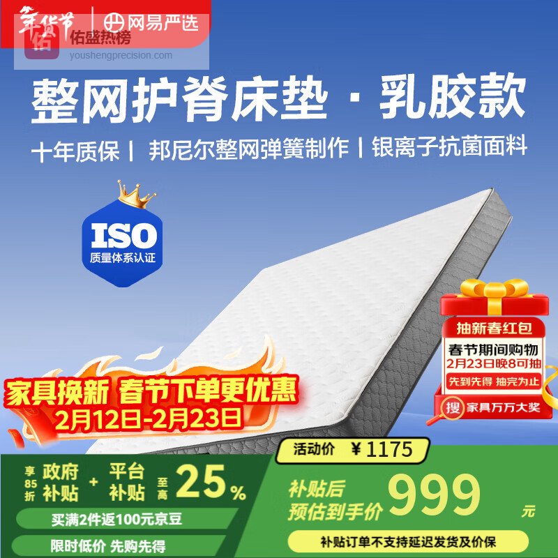 网易严选整网弹簧床垫护脊椰棕乳胶单人双人1.51.8席梦思厚床垫子抗菌防螨 【灵感贴合】乳胶款 180cm*200cm¥