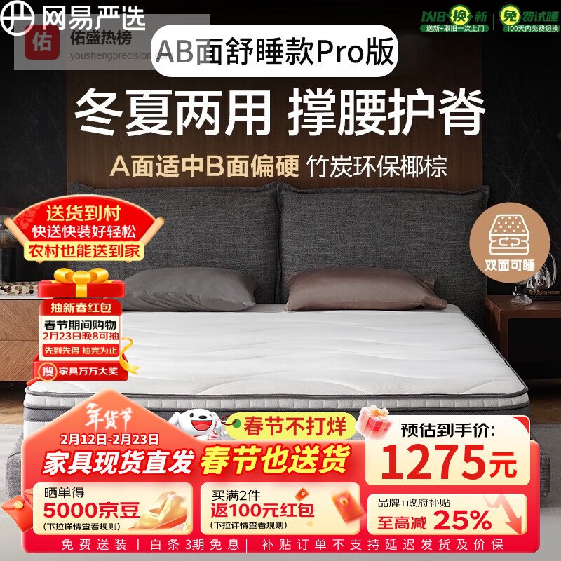 网易严选AB面冬夏两用Pro版 乳胶3D椰棕席梦思弹簧床垫1.2*2米 软硬适中¥