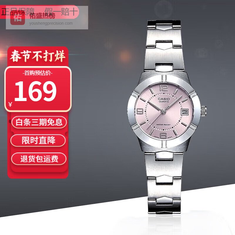 【品牌专营】卡西欧指针系列防水时尚简约石英学生表女士手表情人节礼物送女友钢带LTP-1241D-4A¥