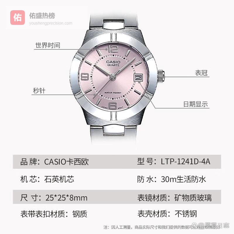 第十款:卡西欧防水时尚简约石英女表LTP-1241D-4A