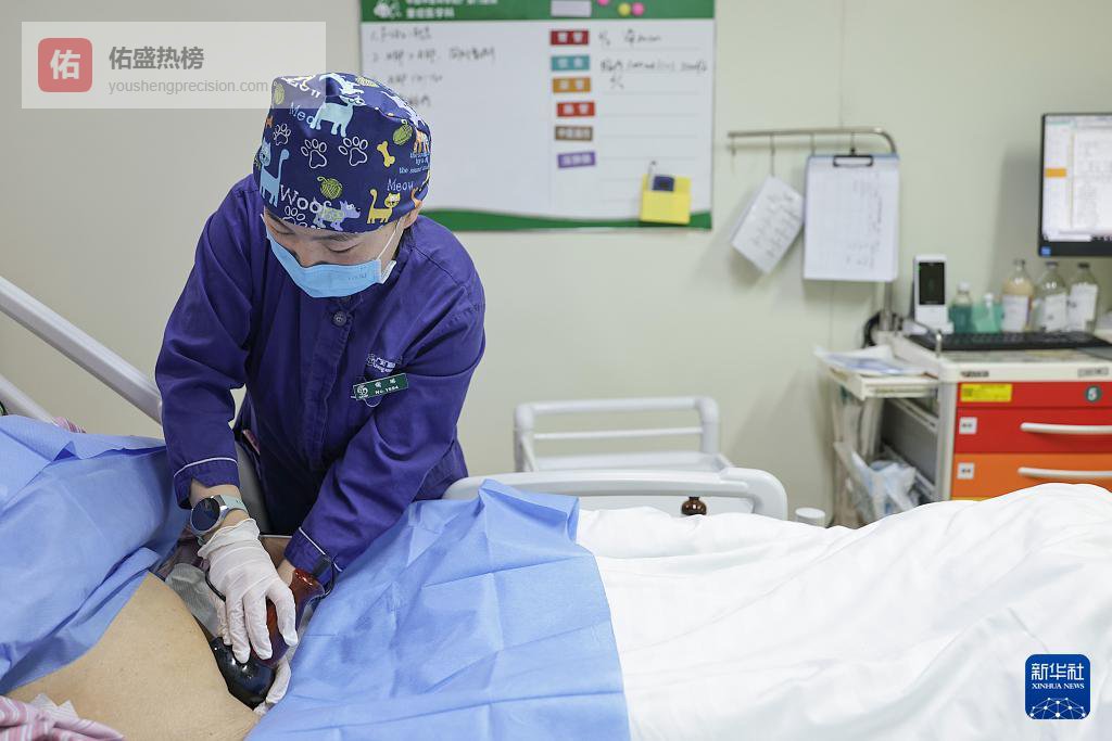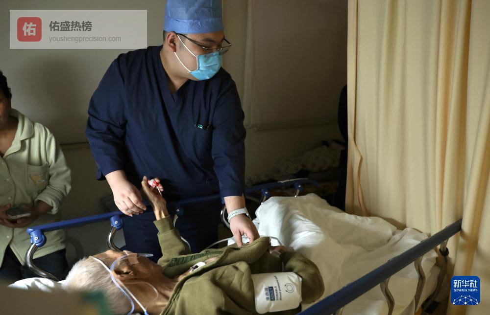 2月12日11时许,一名护士在重症监护室为一名患者进行电热砭石技术操作。