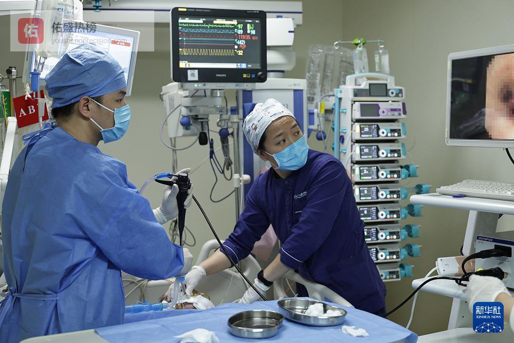 2月12日11时许,医护人员在重症监护室为一名患者进行支气管镜检查。